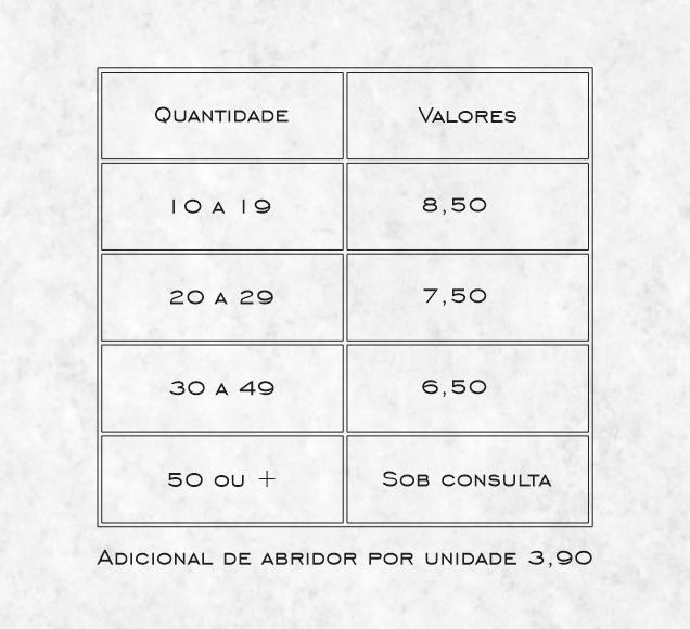 • Quantidade mínima: 10 unidades